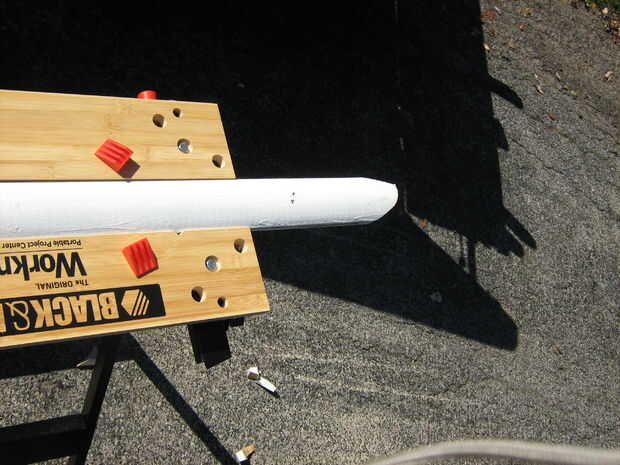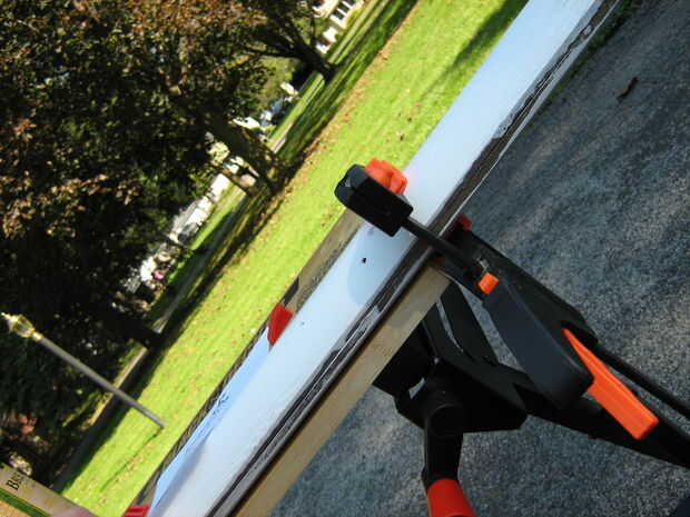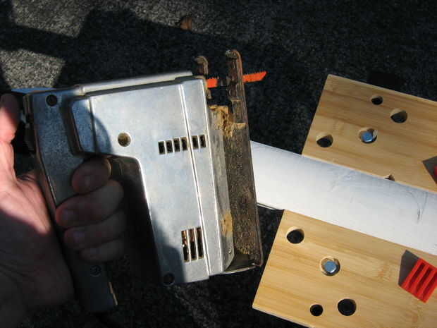 Tomar otro piquete y las espaldas de las dos barras (el uno con el círculo cuarto dibujado en la parte superior) de la línea juntos. Te recomiendo las dos barras de sujeción juntos. A continuación tome su sierra de calar y corte el círculo del cuarto de las dos barras. Desea que los dos juntos para que pueda obtener el mismo círculo cuarto en ambos lados.
