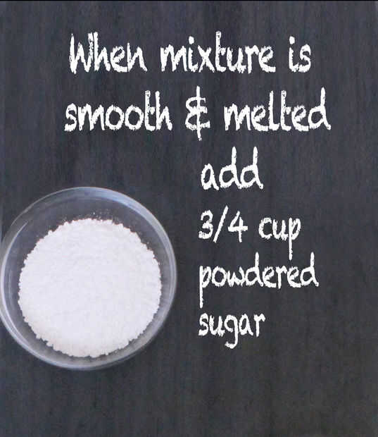 Cuando la mezcla esté suave, agregue 3/4 de taza de azúcar en polvo y revuelva.