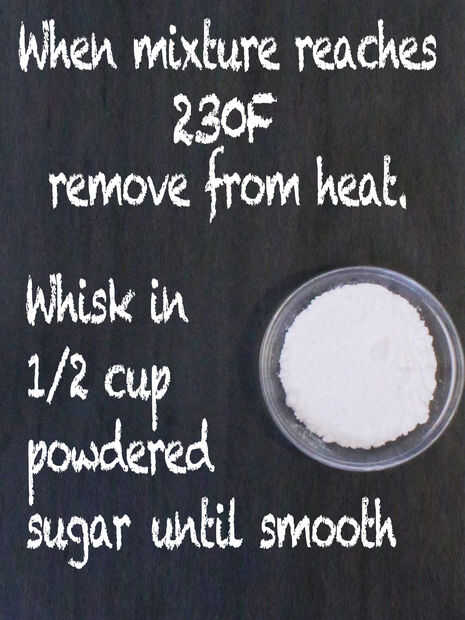 Cuando la mezcla haya alcanzado 230F, retire del fuego.