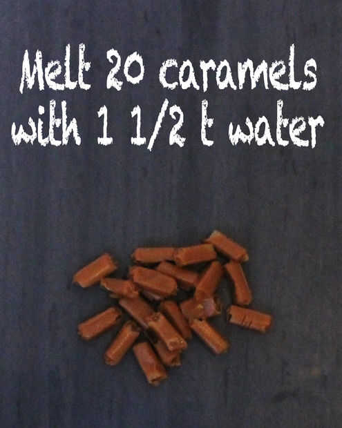 Derretir los 20 caramelos restantes con 1 1/2 cucharaditas de agua en una cacerola pequeña a fuego bajo.