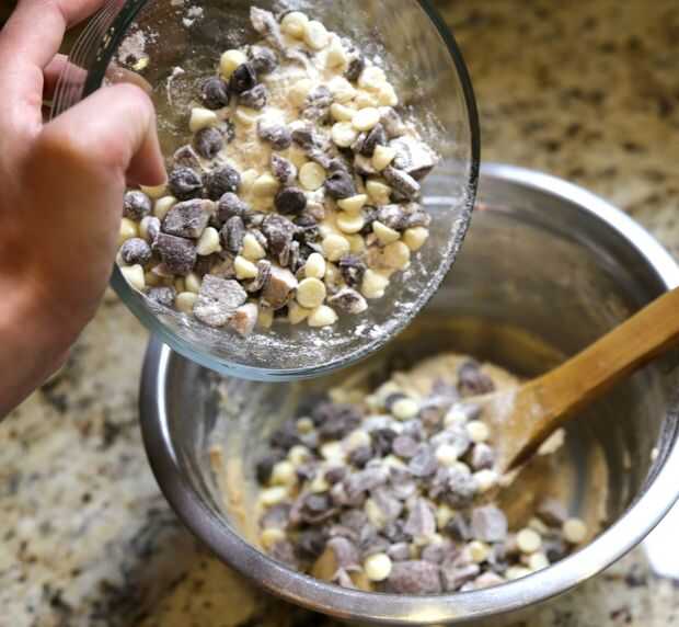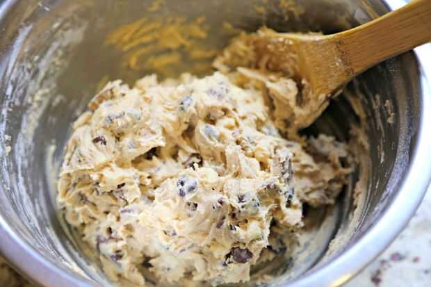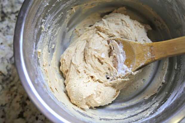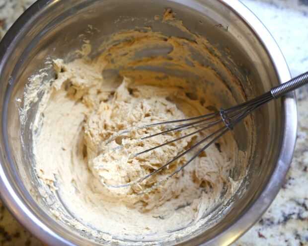 Mezcla la mantequilla, azúcar morena y vainilla hasta que esté suave. Añadir huevo y extracto de vainilla hasta combinar bien.
