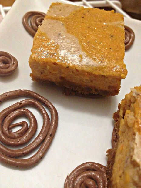 Aquí está una receta que inventó después de ver una receta real sobre Barras de Cheesecake de calabaza en este sitio web que estaba navegando con mi café de la mañana.* Soy terrible en explicar las cosas, tan sólo tienes que seguir a lo largo como me