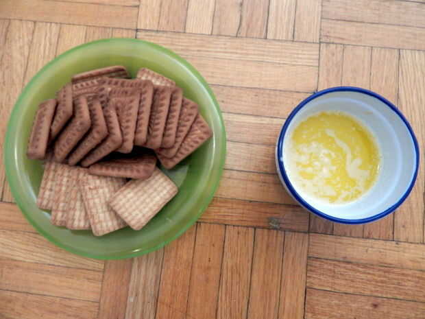 100g galletas (para mejor sabor base la corteza use galletas de jengibre, mi pequeñin le gusta galletas leche mucho, así que usé galletas de leche parle-G)