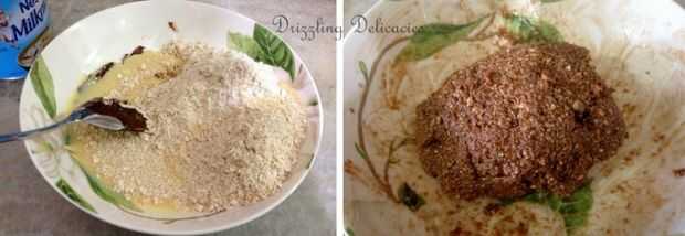 Derretir el chocolate negro por 30 segundos en el microondas. Añadir polvo de avena tostada, lechera y crema fresca. Se combinan así para formar una masa. Usted tendrá que utilizar sus manos para este paso. Será un poco pegajosa en este punto.