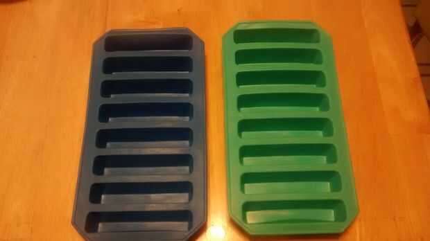 Conseguir algo barra forma para utilizar como molde. Usar estas bandejas de hielo de silicona para poner en botellas, pero se puede utilizar casi cualquier cosa. Luego poner las virutas en un recipiente de microondas seguro y los chips de alta de microondas durante 15 segundos aproximadamente, mezcla, y entonces si necesita microondas otra vez durante otros 15 segundos. Seguir haciendo esto hasta que el chocolate se haya derretido asegurándose de mezclar cada vez.