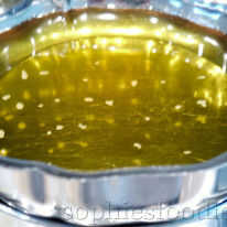 Cuando la base de la galleta esté completamente fría, hacer su topping. Tomar un tazón mediano y agregar las semillas de vainilla. Vierta la leche de coco en ella y mezclar con un batidor pequeño. Batir todo junto. Ahora, añadir el jarabe de arce y mezclar bien de nuevo. Tomar un tazón de fuente para au-bain-marie y ponga aceite de coco y manteca de cacao en el mismo. Poner el calor baja y deje que su aceite de coco y manteca de cacao derriten suavemente, hasta que completamente líquido. Revolver frecuentemente con una cuchara o batidor.
