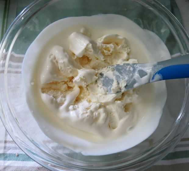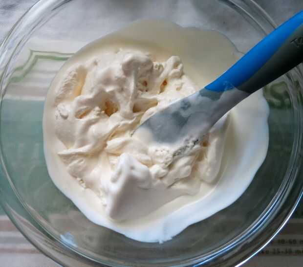 A continuación, extendió el sorbete de sorbete sobre la parte superior seguida por el otro pinta de helado.