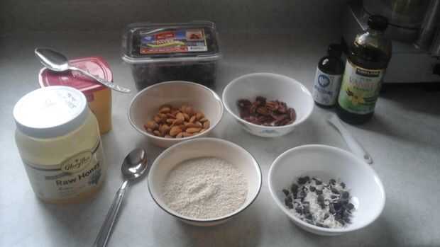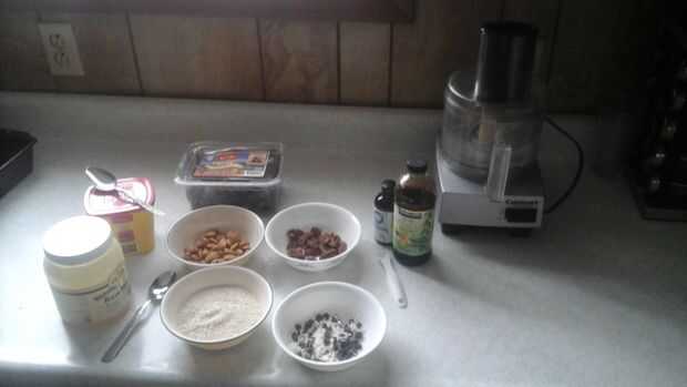 -1 1/2 c de harina de avena (esto se puede hacer moliendo avena [sin sabor] en procesador de alimentos)