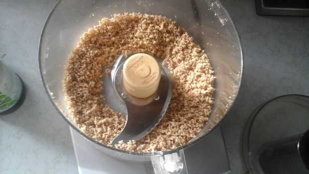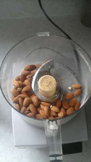 Poner las almendras en el procesador de alimentos y la rutina por unos 30 segundos, o hasta que alcance una consistencia granulosa, húmeda. Almendra no bastante mantequilla consistencia sin embargo.