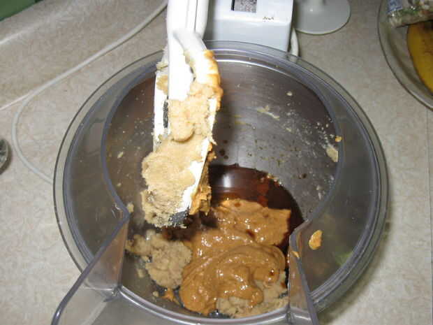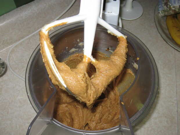Luego, añadir el jarabe de maíz, mantequilla de maní y vainilla y mezclar hasta que quede suave.