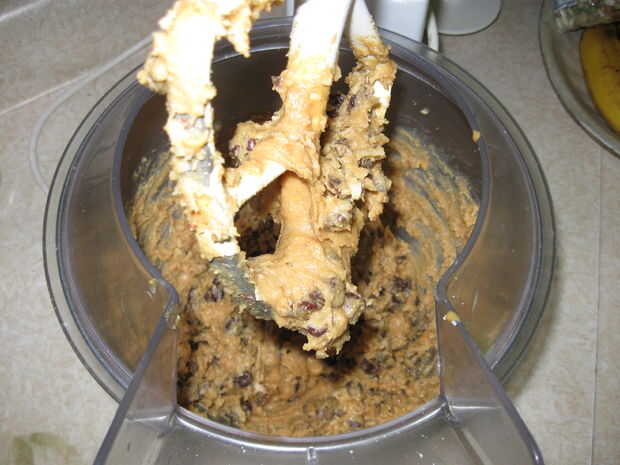 Añadir el coco, chips de chocolate y pasas y por último agregar la avena arrollada.
