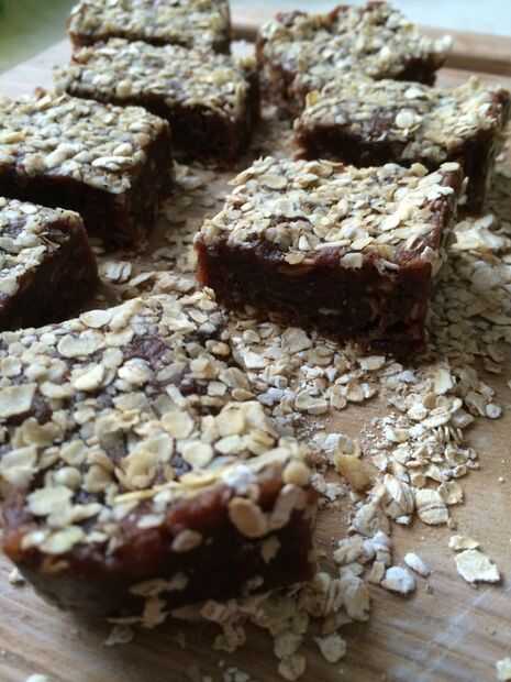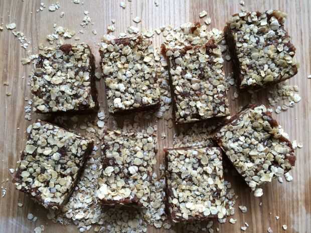 - Si eres como yo y como para que se vea elegante y ciertamente menos pegajoso al comer, espolvorear la avena sobre la parte superior y presione con firmeza para mantener en su lugar.