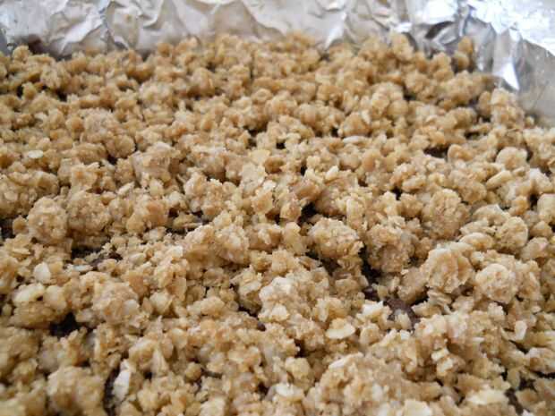 2. Espolvorear la parte superior con la mezcla de avena reservada