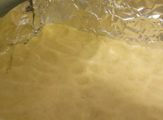 4. Presione la masa en la parte inferior de la bandeja para hornear forrada con papel de aluminio