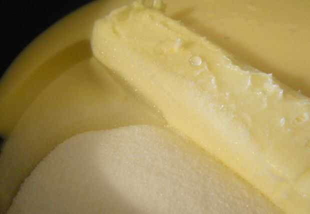 6. Vierta sobre la mantequilla enfriada y la extensión a cubrir uniformemente