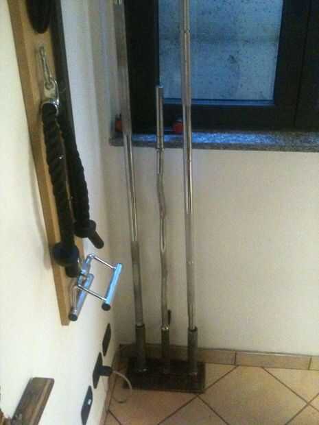 Fui en mi tienda de deporte favorito busca una barra de soporte para mantener mis 3 bares mejor organizado porque solía mantener en la planta, pero encontré sólo uno demasiado grande para mi pequeño gimnasio y era demasiado caro.