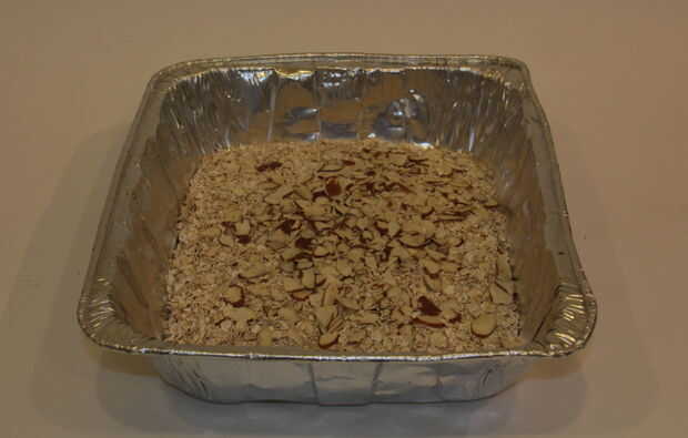 Precalentar el horno a 350 F. Colocar la avena y almendras fileteadas (o cualquier otro elemento seco que hayas añadido) en un recipiente. Hornear durante aproximadamente 8-11 minutos. Revolver de vez en cuando.