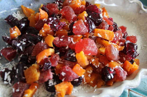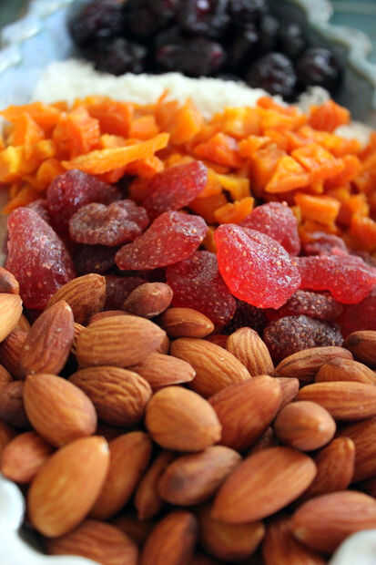Frutos secos menos costosos son las pasas de uva, arándanos y albaricoques. Albaricoques secos también son muy altos en hierro, por lo que siempre me gusta echarlos.