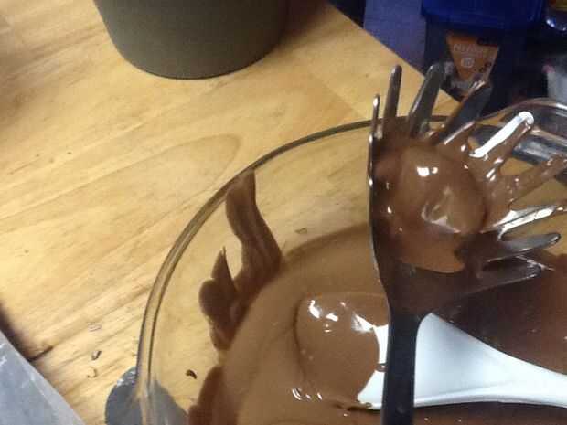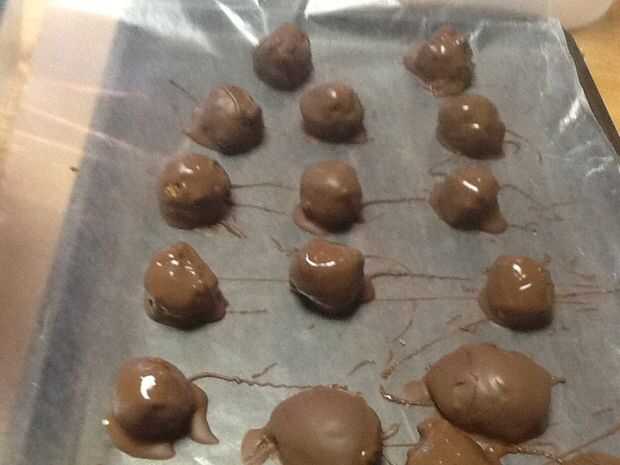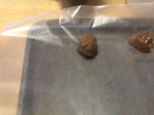 Cuidadosamente cuchara sacar y colocar en papel encerado para hornear cubierto.