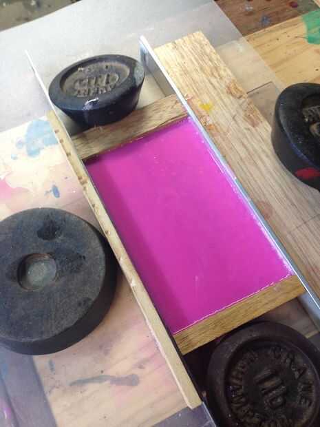 Para mis plantillas encofrado y bar, necesitaba 100ml de silicio - 50ml de blanco, 50ml de la rosa. Mezclar bien. Tiene unos 8 minutos para trabajar con él. Golpe a la mezcla una vez en el molde para ayudar a burbujas de escape.