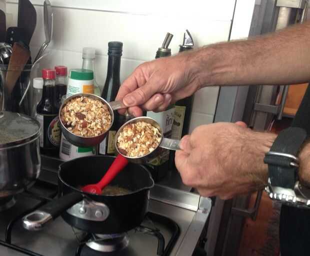 Si quieres poner sabor aquí, puede Agregar un poco de mantequilla, zumo de limón u otras cosas. Ponga a hervir en una cacerola pequeña y como marrones, añadir el muesli, retire del fuego, revolviendo vigorosamente.