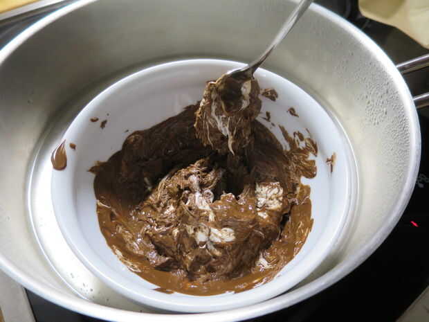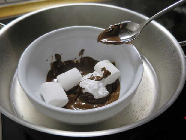 Cuando se derrita añadir tus malvaviscos / marshmallow fluff y seguir removiendo hasta que quede suave.