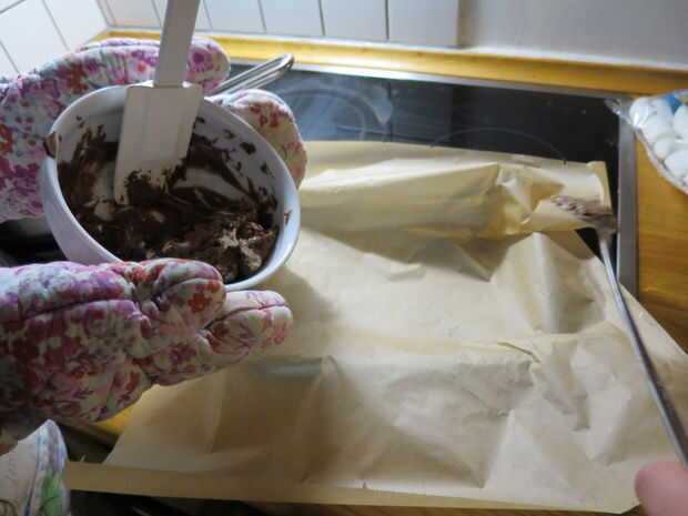 Entonces usted necesita verter la masa en un molde para hornear 16x21cm.