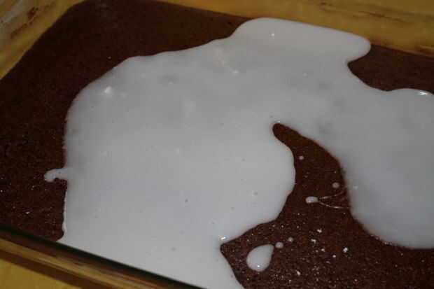 Vierta el glaseado sobre el pan de jengibre, raspando los lados del tazón con una espátula de goma. Difundir todo el esmalte. Inicialmente, se verá muy delicuescentes, pero una vez que se separan uniformemente, se secará un poco. Deje reposar durante 2 minutos antes de cortar.