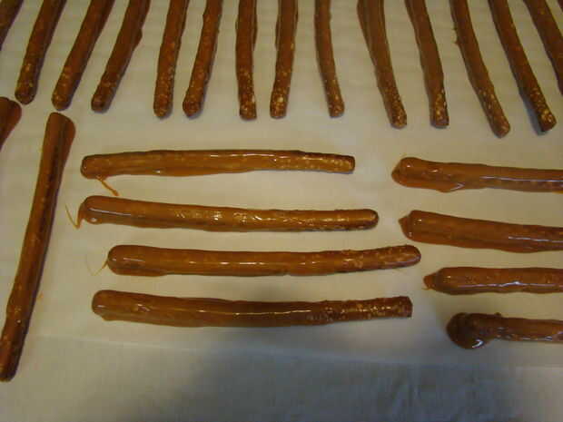 Barras de Pretzel cubierto chocolate (5 / 16 paso)