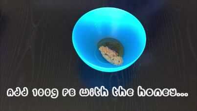 Paso 3: Agregar 100g de mantequilla de maní y miel a una taza
