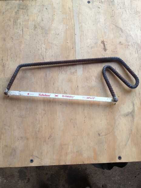 SE NECESITA:4 1/2" pieza de 1/2" de diámetro de barras de refuerzoPequeña fragua (preferiblemente propano)Botella de gas propano (1)Cruz-martillo (24-32 oz)Martillo de bola pein (16 oz)Pequeño par de pinzasMordaza de mesaLlave crescent (con 10&q