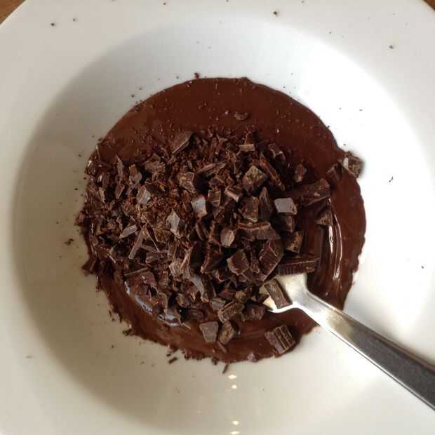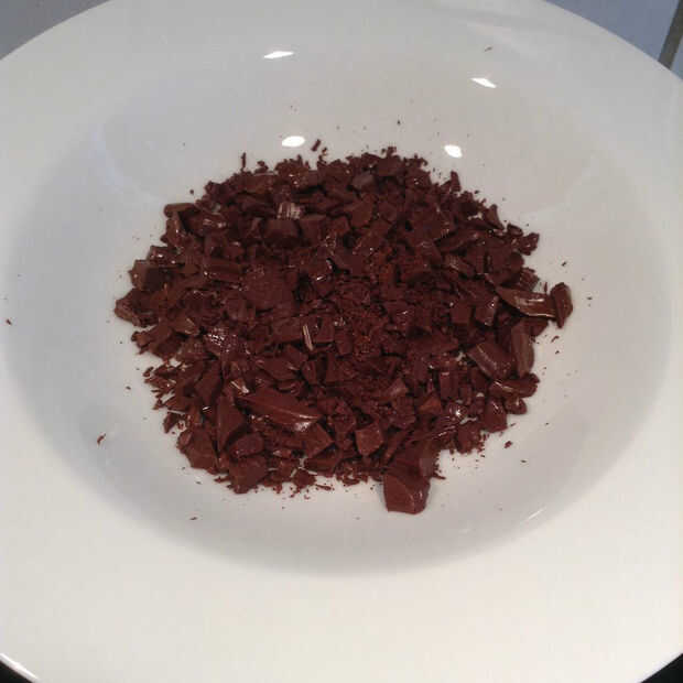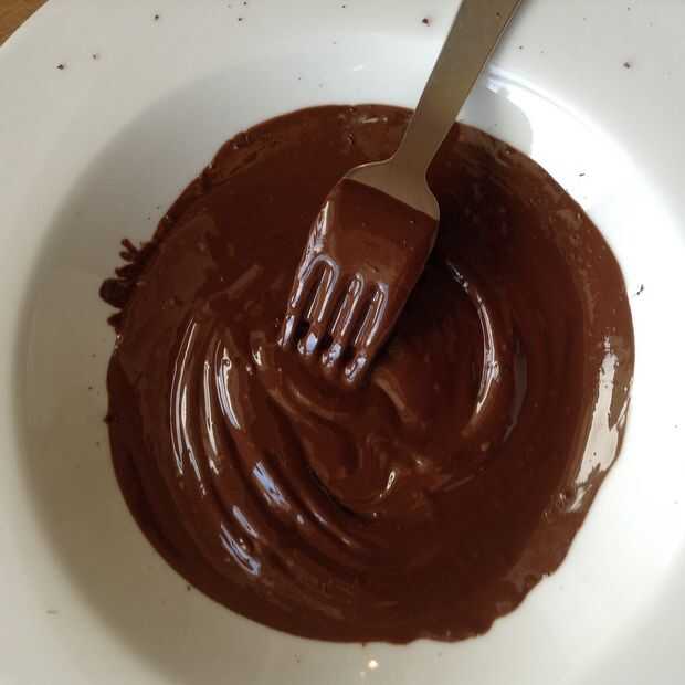 Nota: Cuando el vapor de agua comienza a salir por debajo de la taza, extraer la olla del fuego, ninguna humedad se mete en el chocolate. Si el chocolate no se derrita, devolver la olla al calor. Siempre tenga cuidado de que no hay agua se obtiene en el chocolate, como va a arruinar.