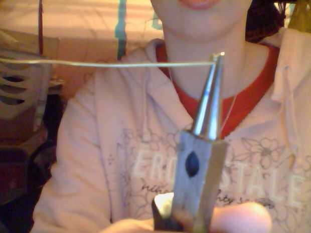 Una vez que usted ha elegido su punto, comenzar a envolver el alambre alrededor de los alicates redondos de la nariz. Envuelva a donde el extremo del cable toca la pieza larga. Colocar la pieza larga en el extremo y enrollar dos o tres veces. Asegúrese de que esté en contacto con el alambre. Usted no quiere cualquier material encordado para mostrar cuando haces su joyería con él.