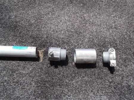 La primera pieza se desliza sobre el extremo de la varilla de diámetro más grande y tiene un extremo roscado. La segunda pieza es un acoplador para conectar las piezas roscadas primeras y terceros. La tercera pieza tiene una rosca final mientras que el otro puede apretarse hacia abajo alrededor de la varilla de diámetro más pequeño.