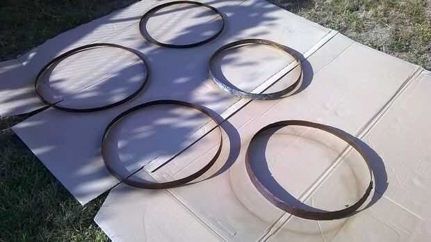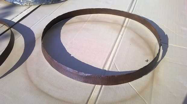 Tercero, limpiar los aros de metal, molerlos y darles una capa de pintura antioxidante o simplemente pintarlas con barniz transparente como yo lo hice porque me gustó la pátina que tenían. (fotos 9-10)