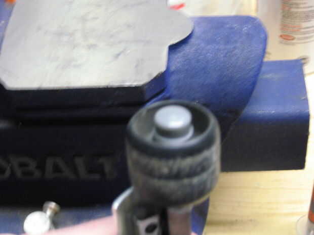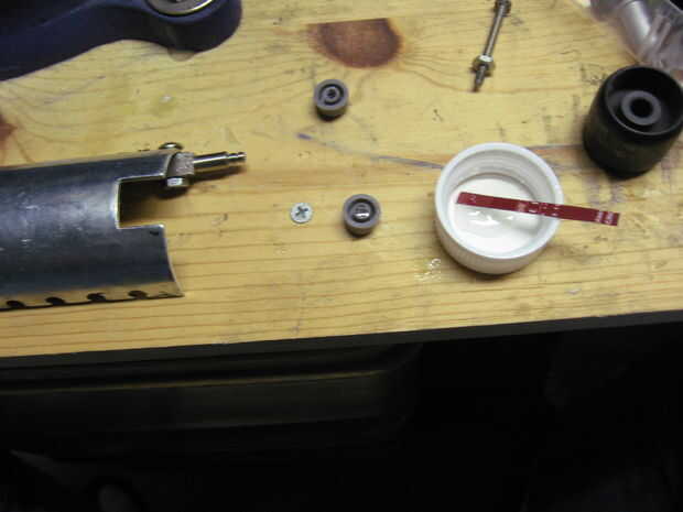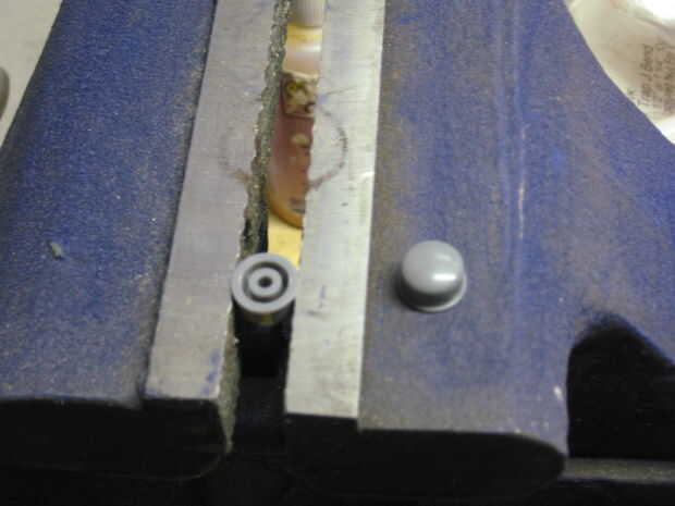 Con que hecho he mezclado algunos epoxy general y coloca un poco en el agujero recién ensanchado en la parte trasera el botón. La parte difícil es utilizar suficiente epoxi para asegurar el botón, pero no tanto que funciona hacia fuera y pega la rueda al eje. Una vez tienes el epoxi en lugar Deslice la rueda en el eje y luego la tapa con el botón de epoxi tratada. Deje que se endurezca durante la noche.