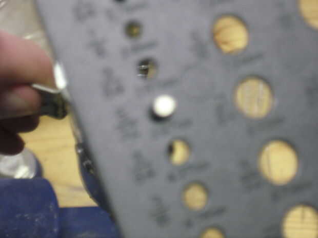 Anteriormente hemos averiguado la colocación óptima de las ruedas al determinar la posición del eje. Ahora necesitamos una manera de asegurarse de que las ruedas no salen del árbol. He logrado esto mediante el uso de botones de plástico que rescatado de algunos aparatos electrónicos. Los botones tenían una pequeña cosa de Pilar hueco en el centro que apenas cabe en el extremo del eje, pero no era un asimiento apretado lo suficiente como para mantener las ruedas en. Así que utilicé a mi calibrador de tornillo broca de taladro para determinar el diámetro del eje. Luego asegura los botones en el vicio y utiliza un poco del mismo diámetro del eje para ensanchar el agujero un poco más.