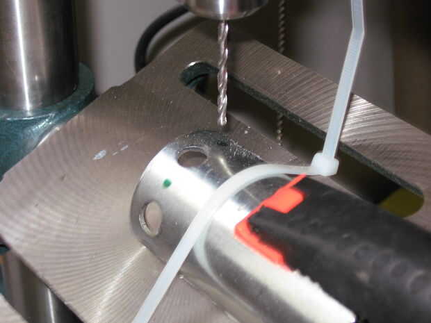 Para los agujeros del árbol que necesitaba perforar ubicacion muy cerca del borde y la pieza era casi imposible sujetar a la prensa del taladro. Así que había asegurado en mi mordaza y había perforado con mi taladro de mano.