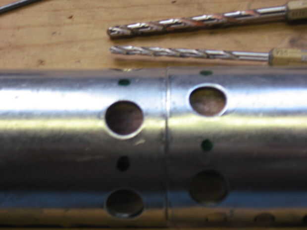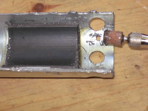 Ahora la limpieza de los bordes de los agujeros con el aditamento de molino de la Dremel.