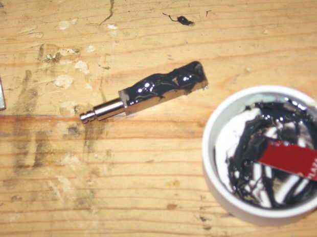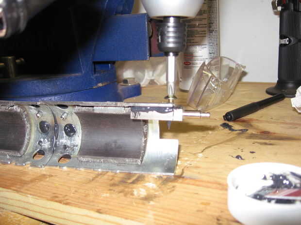 Mezclar algunas metálicas de Unión epoxi. Frotis de la superficie del eje que vas a unir a la carcaza. Alinee el orificio roscado en el eje con el agujero en la carcasa. Enrosque el tornillo en el orificio del eje pasando a través del agujero en la carcasa. Apriete el tornillo con un destornillador. Untar un poco de epoxy en la parte del tornillo que ha pasado por el eje y luego asegure con una tuerca. Repita para el otro lado. Permita que el epoxi seco durante la noche.