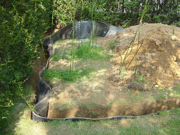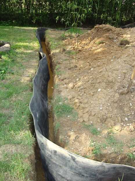 Esto significa que usted tendrá que cavar una zanja profunda alrededor de su área de jardín que se llenará con el bambú.