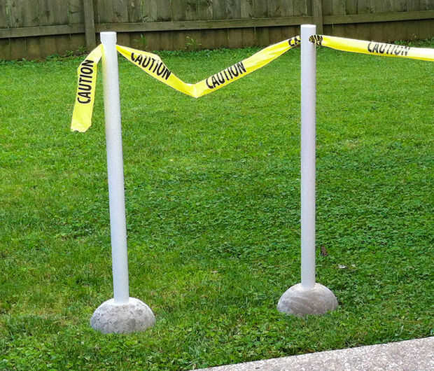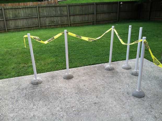 OK mi versión no es muy tan dura como la primera página.  Pero lo hará nuestro trabajo!  Estoy haciendo esto para ayudar con un kids run.  Esta barrera nos ayudará a mantener a los padres de"paparazzi" de la línea de meta.