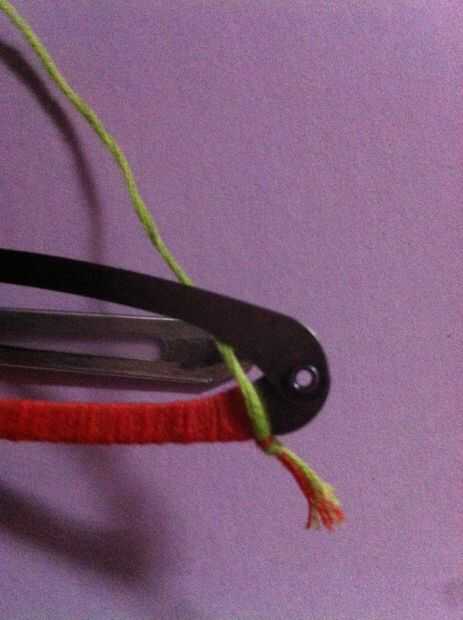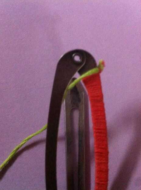 Envolver el cadena hilado hasta el extremo de la horquilla sólo deslícelo bajo el otro lado y sólo envuélvalo alrededor del otro lado de la horquilla. Si te encuentras con un no en el snip a final de la cola.
