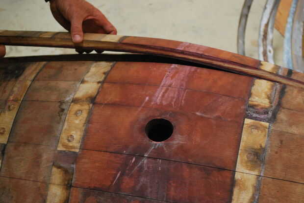 Los pentagramas separan fácilmente una vez que se retiran los aros - hay ninguÌ n pegamento, sólo la presión de los aros mantenerlos juntos (y la hinchazón de la madera). Es un momento mágico para ver un barril super fuerte derrumbe en pedazos y el aroma de vino tinto y roble llenan el aire. Y la coloración rojo intenso es realmente increíble ver.