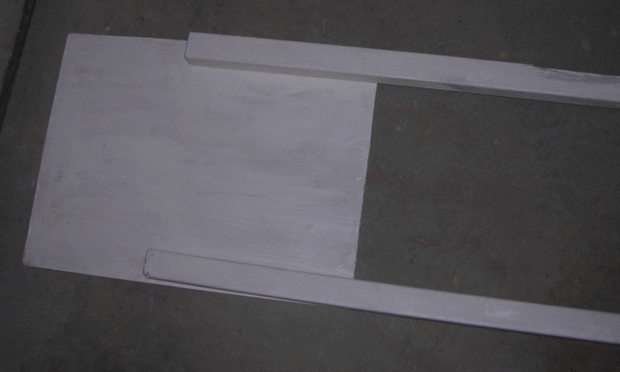 Una vez que la estructura se ensambla, la barricada se pintó de blanca para que coincida con la puerta del garaje.