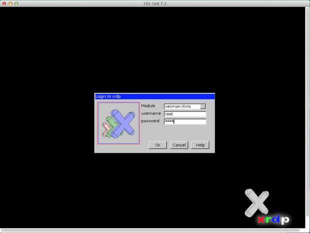- Dentro del emergente de escritorio remoto, tipo 'root' para el usuario y la contraseña.