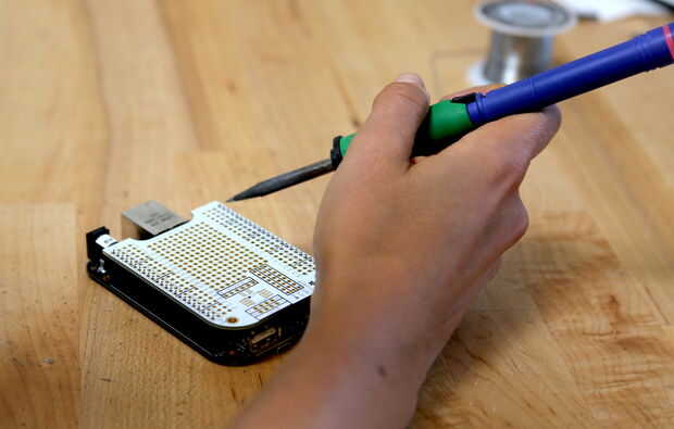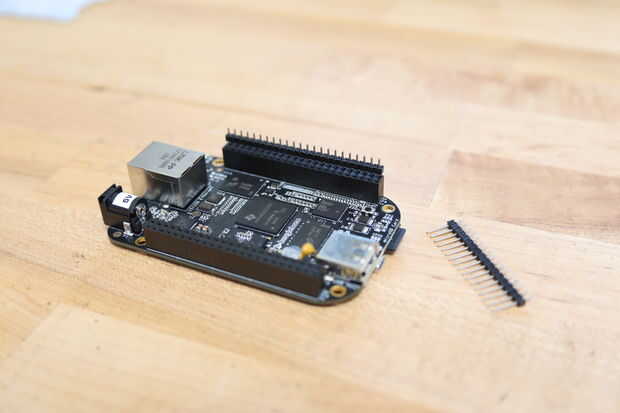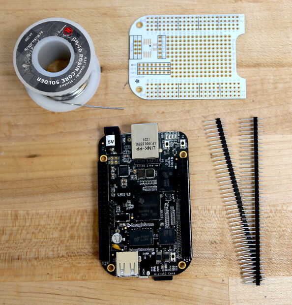 El kit de BBB Protocape viene con un par de patillas de la cabecera. Meter las patillas de la cabecera en los pines hembra en el BBB y romper el resto. Descansar la Protocape en la parte superior los pines encabezado y soldarlos juntos.