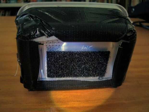 Usé algunos velcro adhesivo en la parte posterior del envase y mi sombrero.