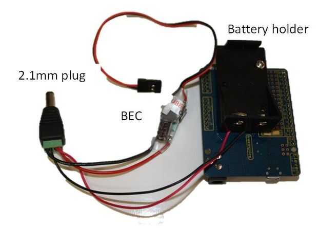 1. Conecte el soporte de la batería a la ONU con tuerca y perno 10mm M3. También Conecte los puentes a positivos y negativos del BEC y el soporte de la batería a la misma toma de 2,1 mm.