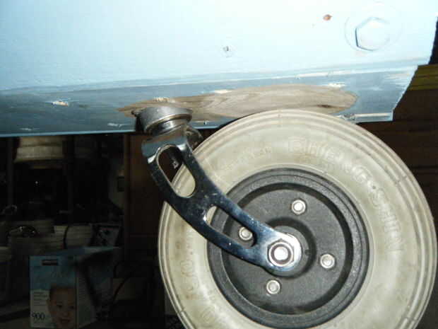 El problema de segunda y mucho más molesto fue la rueda de atras. Debido a los ángulos y estrés involucrados, la rueda trasera mantiene frotamiento en la parte inferior del plano. Para solucionarlo temporalmente, yo simplemente tierra abajo de la madera por encima de la rueda con una amoladora. Esto funcionó por un tiempo pero no duró mucho. Al final el problema resultado para ser la madera que la rueda fue unida, fue aplastar bajo el peso. Tuve que reforzar con tornillos y arandelas.